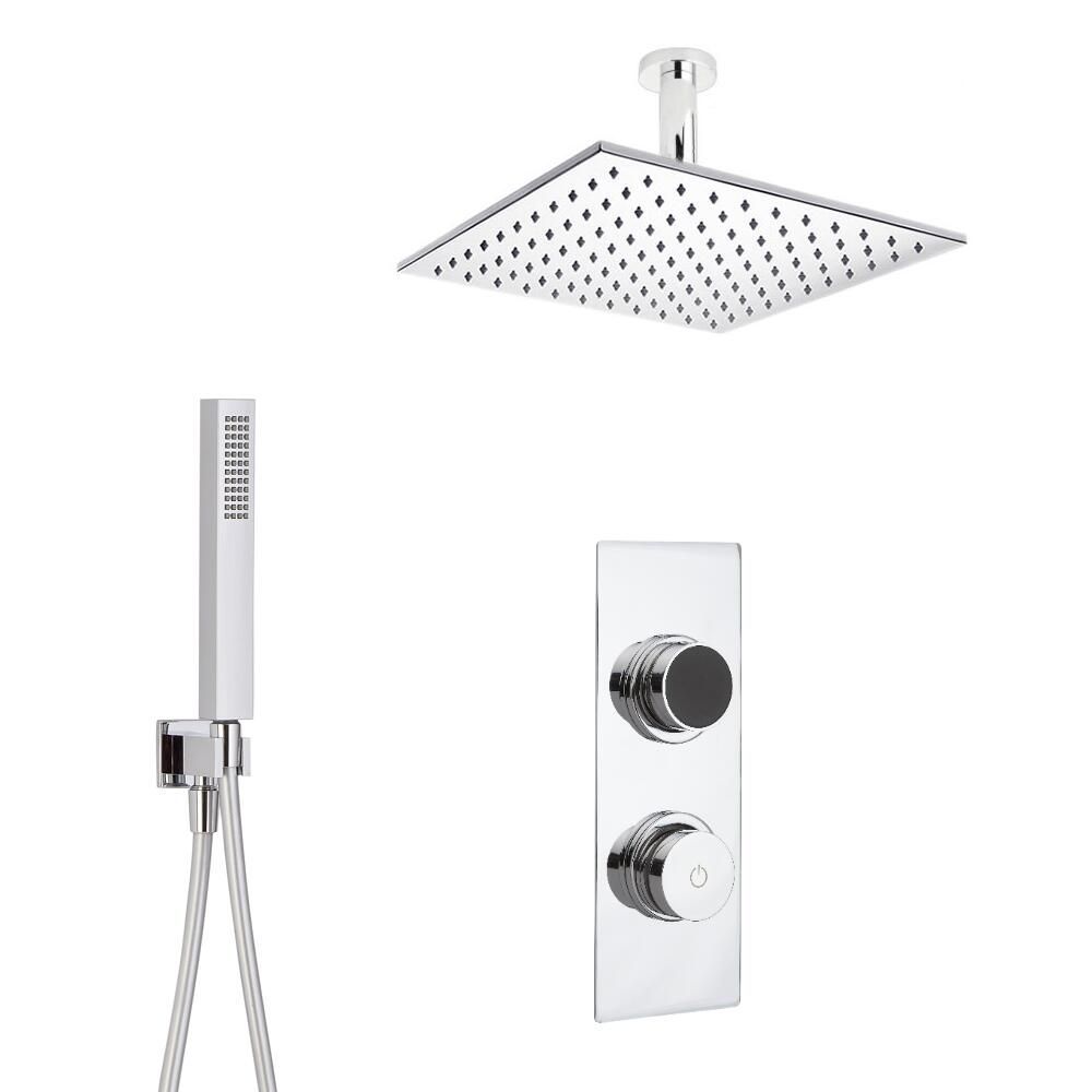 Geleverd inclusief een plafond douchekop met een afmeting van 20 x 20cm en een 20cm plafonddouche-arm een 2-weg digitale thermostatische inbouw douchekraan en met handdouchecombinatie. Dit is de ultieme douche voor een optimale douche-ervarings. Ze moet gedeeltelijk worden ingebouwd in de betonnen muur. Zet de douche aan en uit met een druk op de knop en pas de temperatuur aan door eenvoudig aan de knop te draaien. De douchekraan heeft een ingebouwde omstelkraan. De douchekraan heeft tevens een kleurwisselindicator voor de temperatuur.