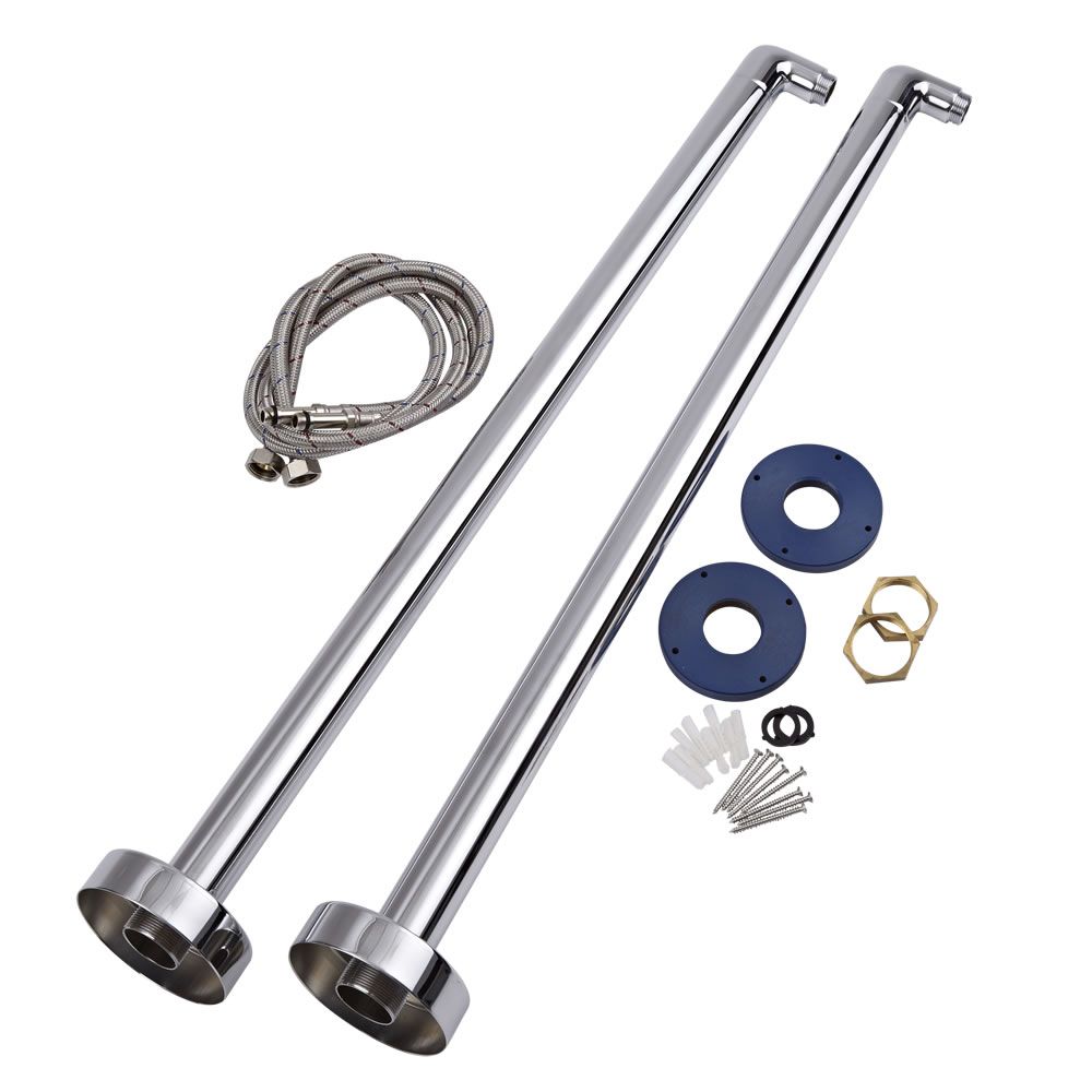 Met deze elegante standpijpen kunt u badkranen installeren over de rand van een vrijstaand bad dat geen kraangaten heeft. Vervaardigd van massief messing met een slijtvaste chromen afwerking voor gegarandeerde duurzaamheid, verbergen deze standpijpen de watertoevoerleidingen voor een aantrekkelijke, nette finishing touch.