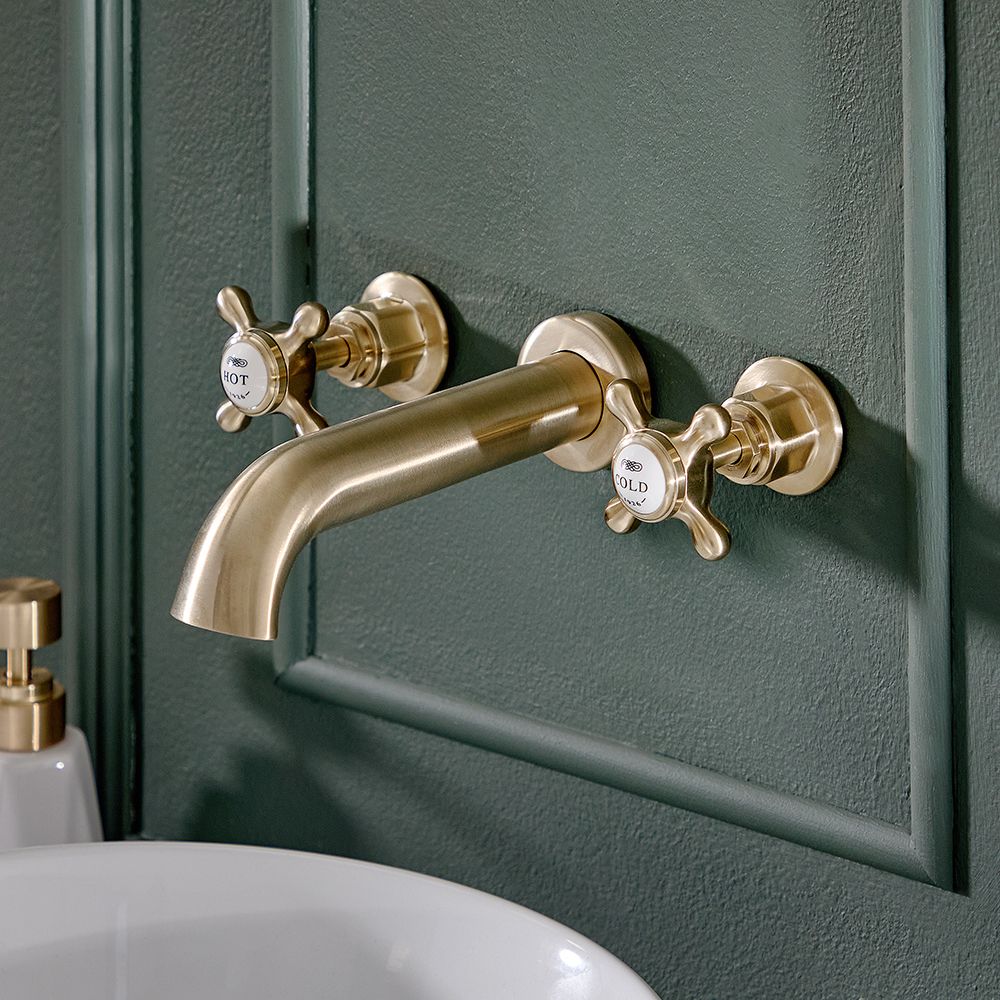 3-gats Wastafelmengkraan Muurbevestiging Klassiek Kruiskop Handvat | Kies de Afwerking | Elizabeth