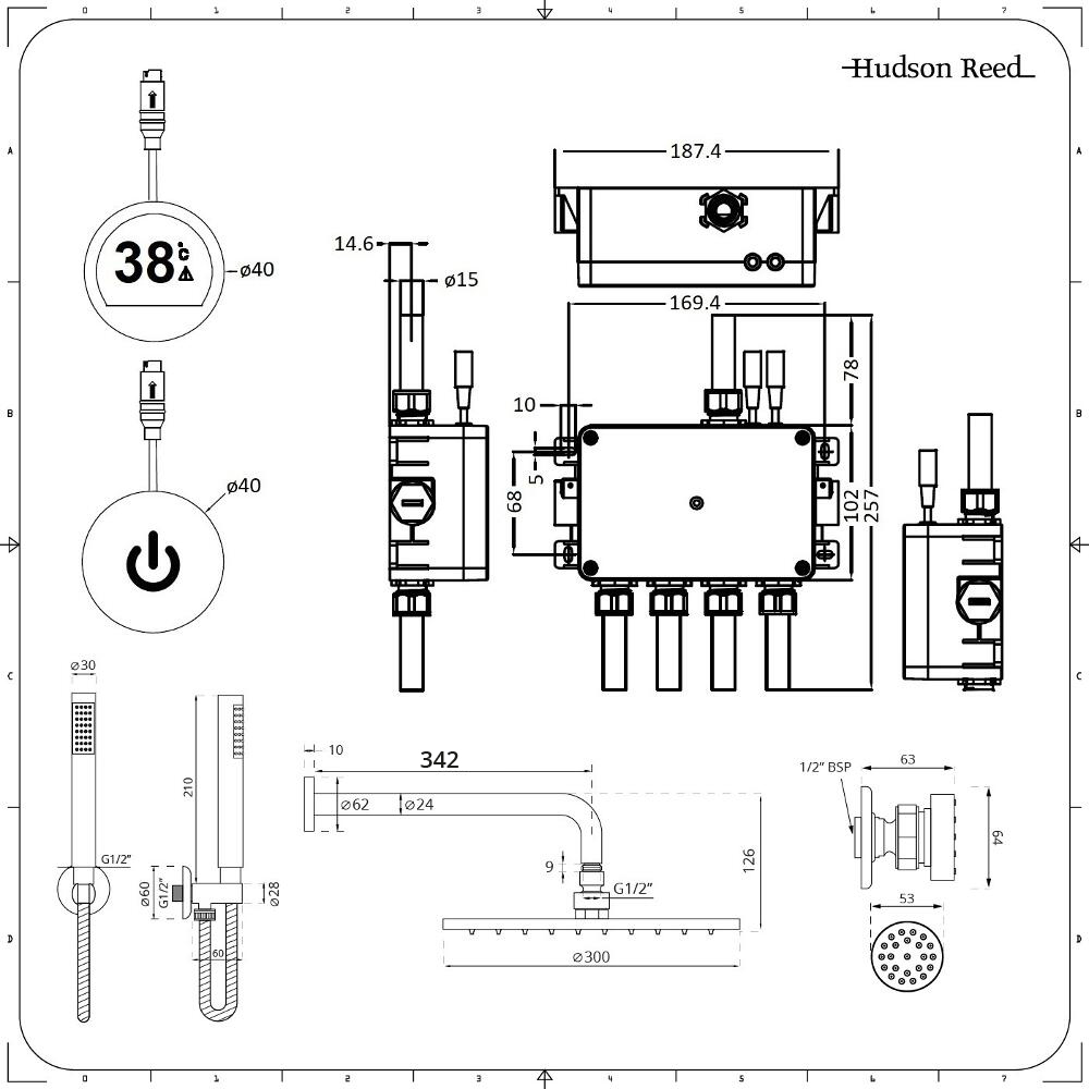 3-weg Digitale Thermostaatkraan + d.30cm Douchekop Muurbevestiging + Handdouchecombi & Zijdouches | Narus