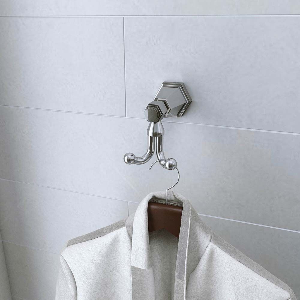 Deze badjashaak is vervaardigd van massief messing voor uitstekende sterkte en duurzaamheid en heeft een klassiek en elegant ontwerp met een slijtvaste chromen afwerking. Hij is ideaal voor het ophangen van uw handdoeken en badjassen in de badkamer.