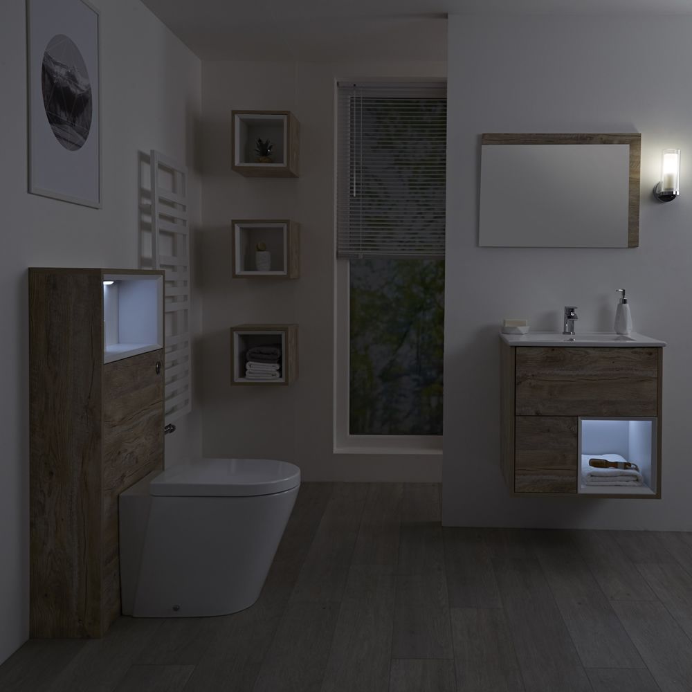 Badkamermeubel Set Hangend 60 cm Licht Eiken Incl Wastafelmeubel + Toilet + Stortbak + Ombouw - incl/excl. LED - Hoxton