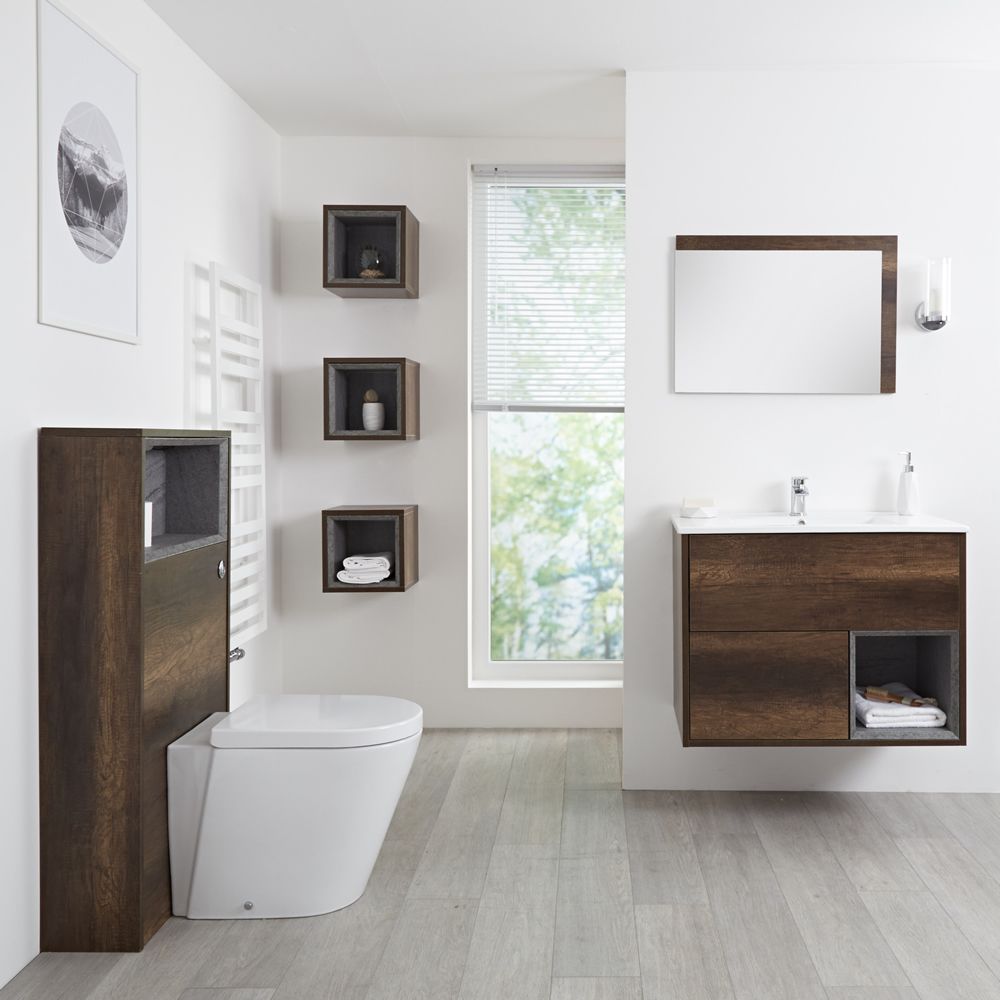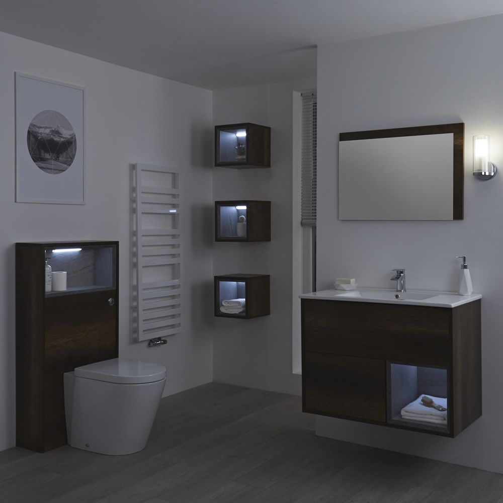 Creëer een volledig gecoördineerde look met het Hudson Reed Hoxton 80 cm badmeubel, wc-meubel, open kast en spiegel. Met een donker eiken afgewerking is dit de must have combinatie. Ze wordt voorgemonteerd geleverd om de installatietijd te verkorten. Het hangende badkamermeubel heeft veel opbergruimte voor toiletartikelen en schoonheidsproducten, terwijl het toiletmeubel de stortbak en het pijpwerk verbergt voor een nettere afwerking en gemakkelijkere schoonmaak beurt. Let op: kraan en afvoer niet inbegrepen.