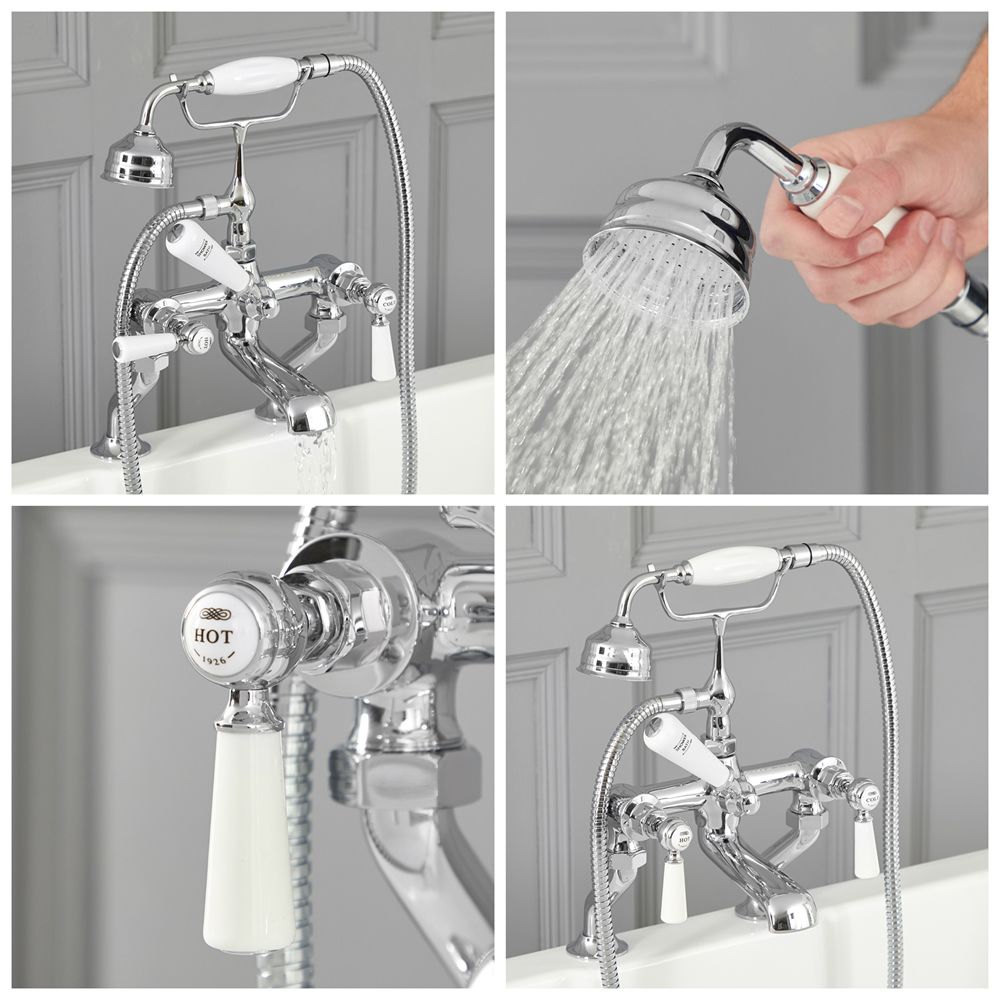 Creëer een prachtige traditionele stijl in uw badkamer met deze klassieke Elizabeth badmengkraan met baduitloop en handdouche.