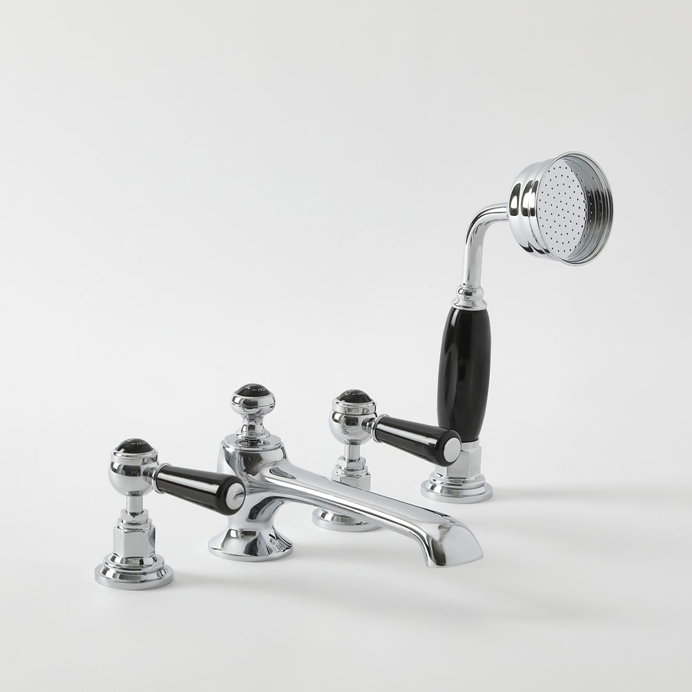 Gemaakt van massief messing voor een luxe gevoel en gegarandeerde duurzaamheid, heeft deze badmengkraan een chromen afwerking met zwarte keramische handgrepen. De stijlvolle gebruiksvriendelijke hendels laten u moeiteloos de waterstroom en temperatuur regelen en u kunt gemakkelijk de waterstroom schakelen tussen de uitloop en de handdouche dankzij de omstel die eenvoudig bediend wordt door middel van de trekknop bovenop de uitloop.
