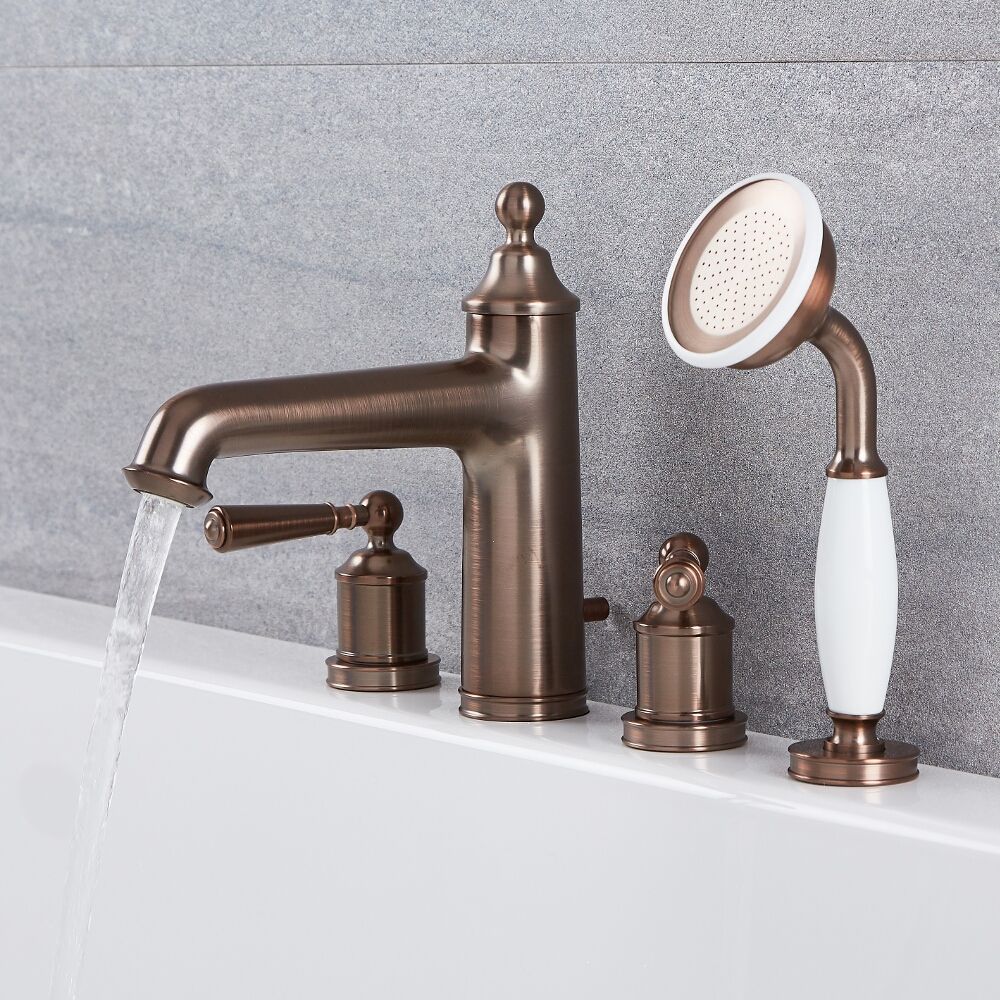 Vervaardigd van massief messing met een olie gewreven brons afwerking voor langdurige kwaliteit en duurzaamheid, heeft deze klassieke badmengkraan ergonomische hendels waarmee u de waterstroom en temperatuur gemakkelijk kunt regelen. De handdouche is voorzien van anti-kalk sliconennopjes en produceert een verfrissende waterstraal.