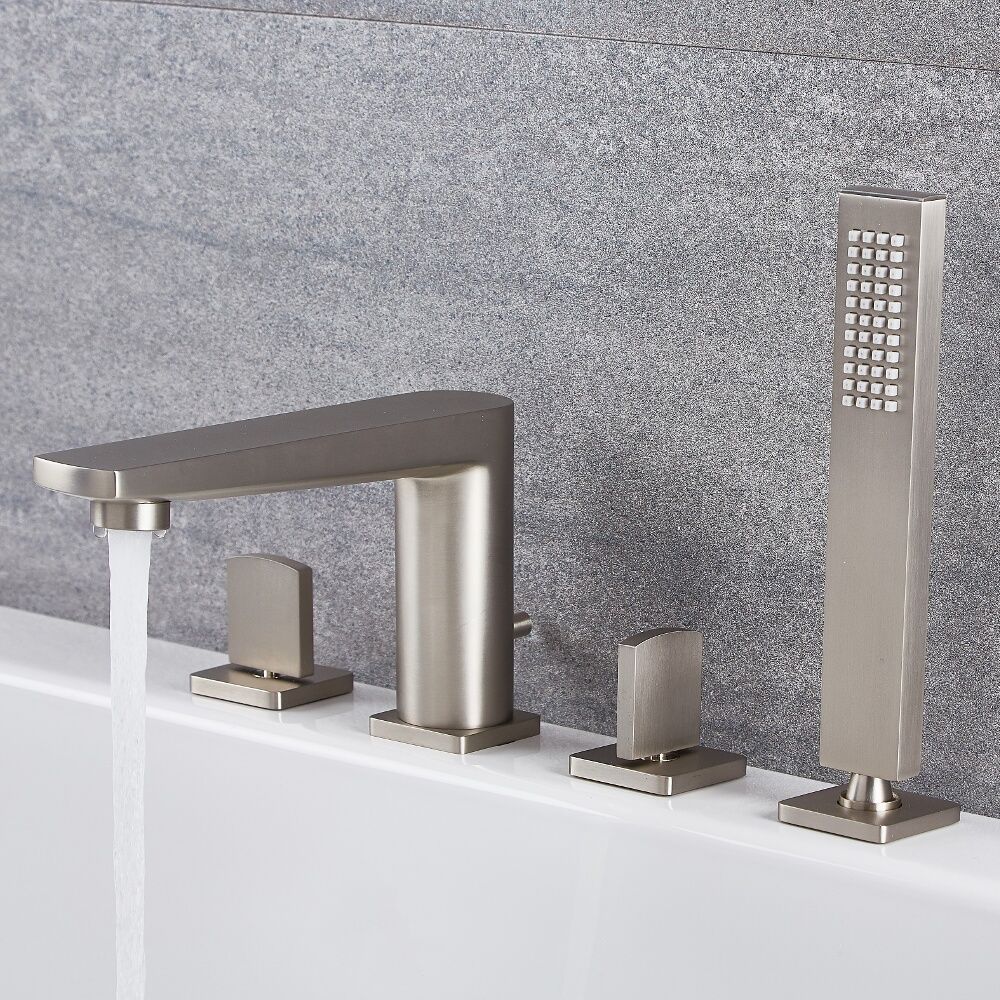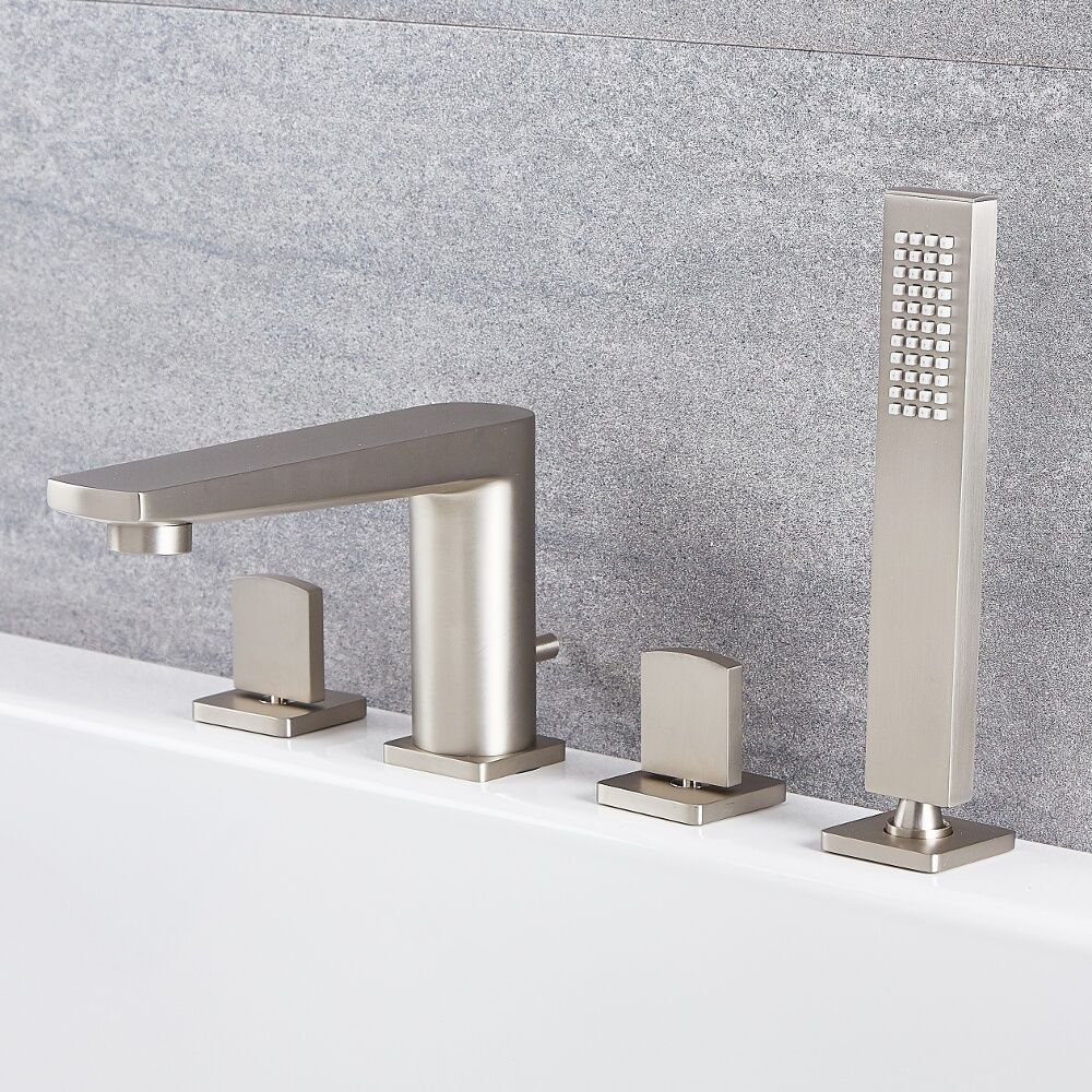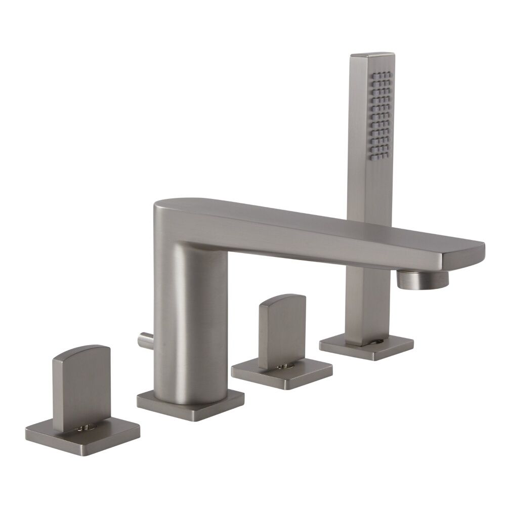 Deze badmengkraan biedt een combinatie van stijl en functionaliteit. Hij heeft een strak modern ontwerp en is afgewerkt in geborsteld nikkel. De handdouche produceert een verfrissende waterstraal en is ook handig om mee het bad te reinigen of af te spoelen.