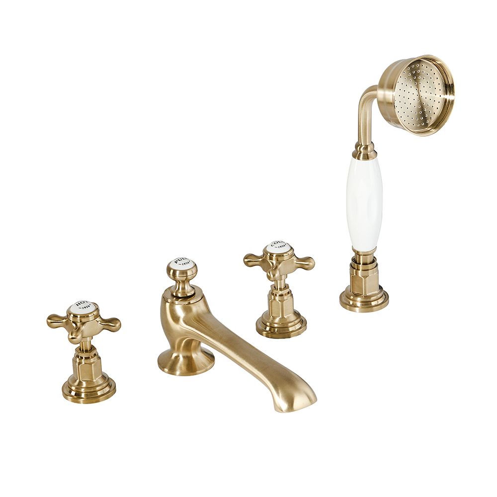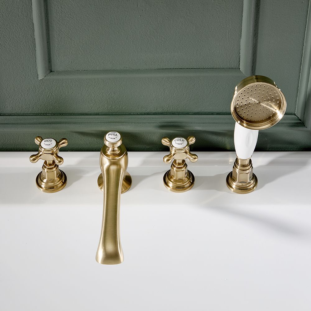 Badmengkraan 4-Gats met Kruisgrepen Incl. Handdouche Klassiek - Satijn Goud | Elizabeth