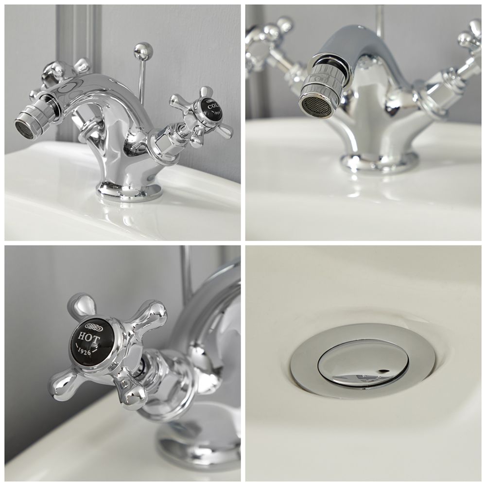 Bidetkraan 1-gats Klassiek met Kruiskop Handvaten Chroom en Zwart | Elizabeth