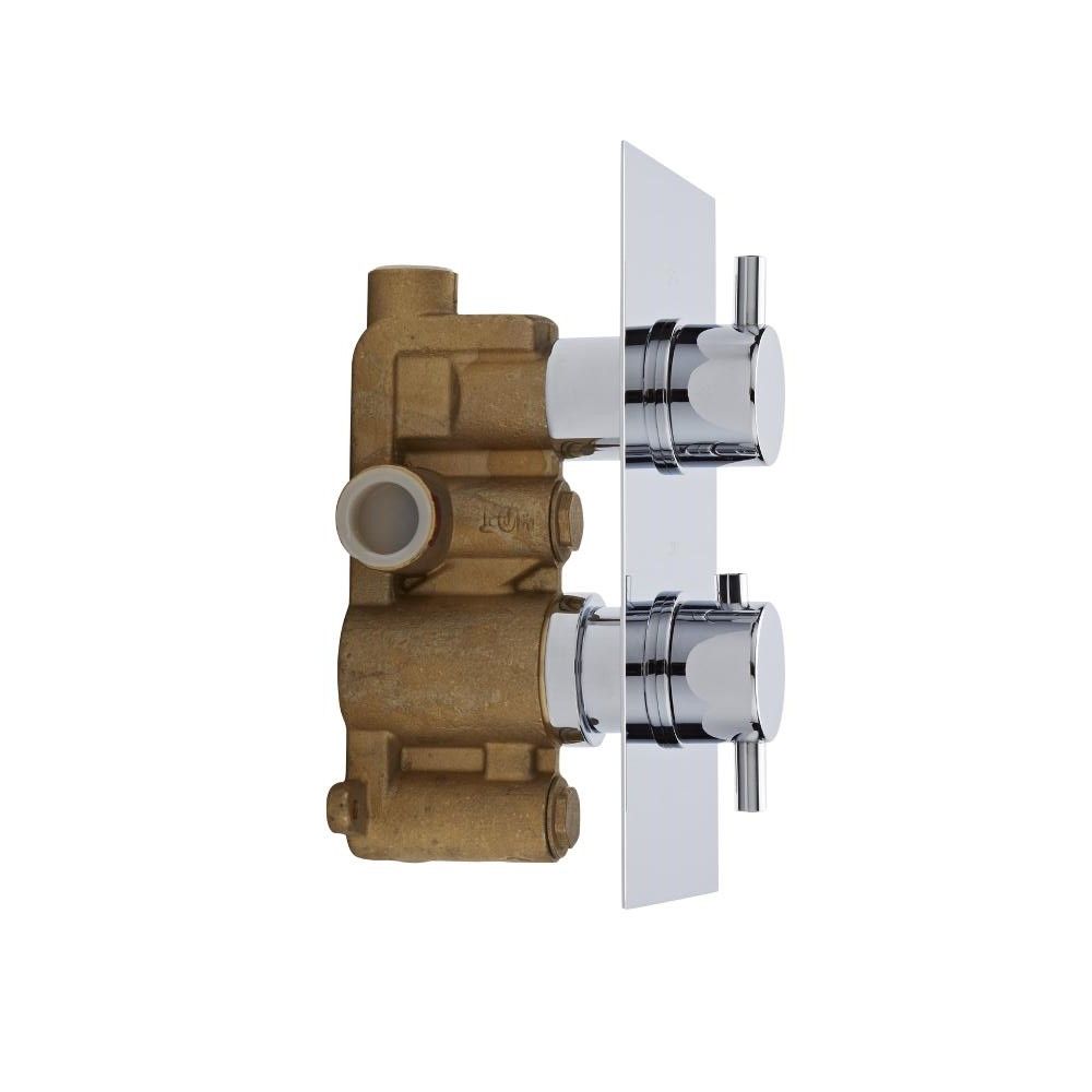 Deze 1-weg inbouw thermostaatkraan is gemaakt van massief messing en heeft een keramische schijf.