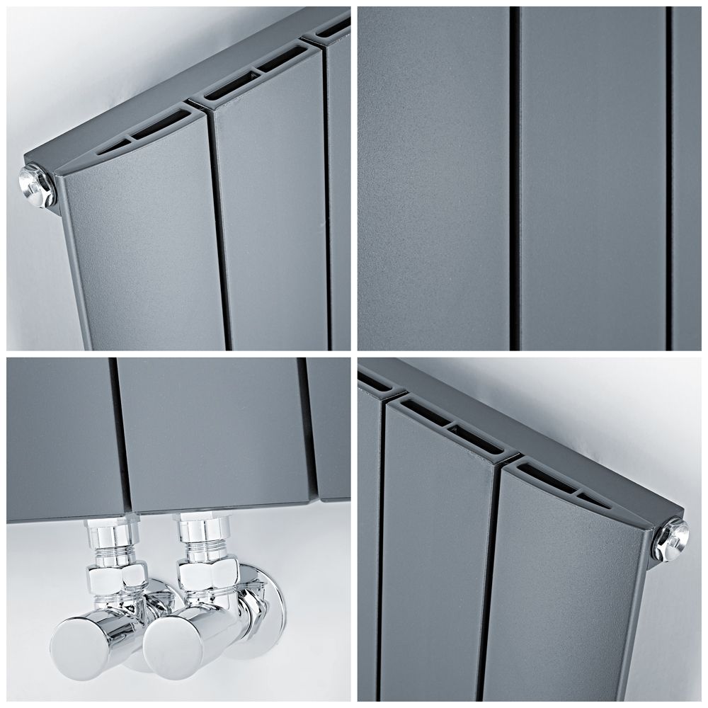 Creëer een opvallende moderne look en verwarm uw huis in stijl met deze Aurora antraciete aluminium verticale design radiator.