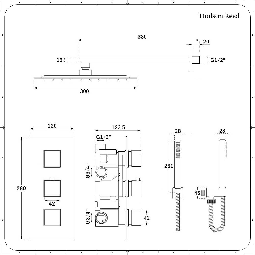 Breng designerstijl in uw badkamer en geniet van douchen in stijl met dit Preto thermostatische douche en bad systeem bestande uit een 3-weg douchekraan met omstel, een 30cm vierkante douchekop, een handdouche en een overloop-badvuller.