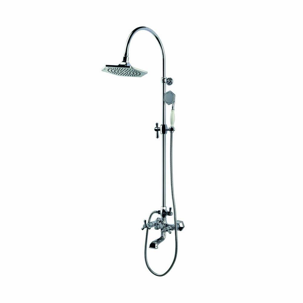 Deze RAK Washington klassieke douchekolom, compleet met 3-weg handmatige opbouw douchemengkraan, douchekop, handdouche en baduitloop, creëert een opvallende, stijlvolle, vintage look in uw badkamer.