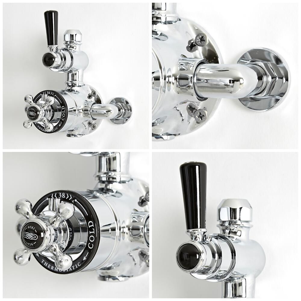 Voeg een elegante touch en een traditionele stijl aan uw badkamer toe met deze klassieke Elizabeth douchekolom met thermostatische opbouw douchekraan en een 19,4cm diameter ronde douchekop.