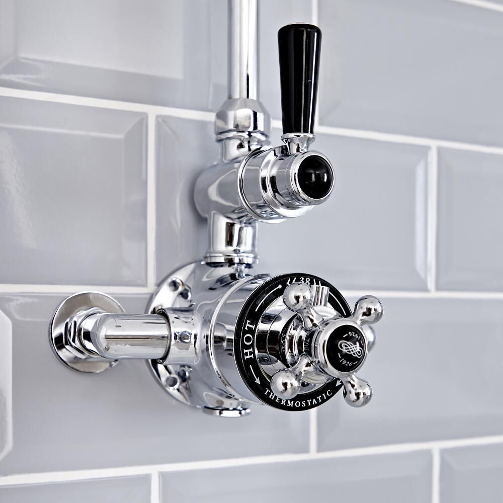 Douchekolom Klassiek Opbouw 1-Weg Thermostatisch Douchekop 19cm Rond Chroom en Zwart | Elizabeth