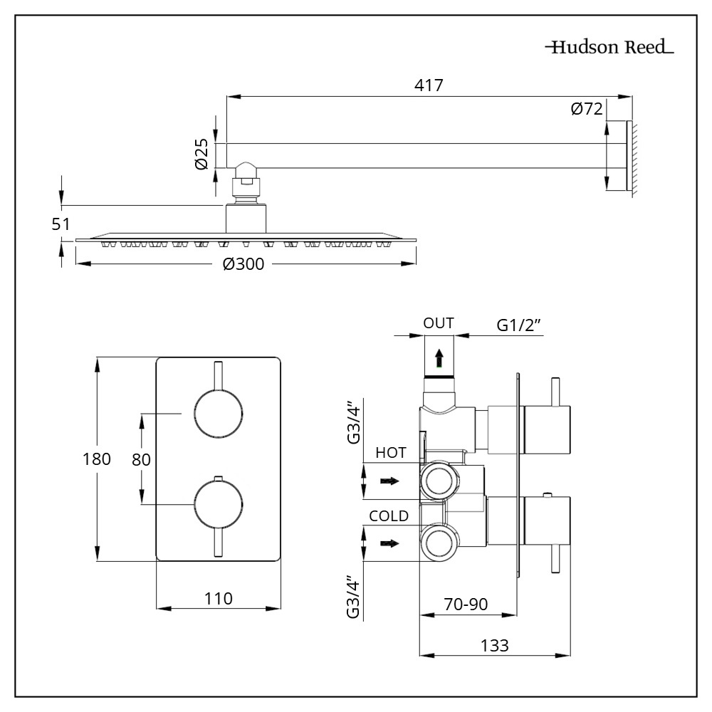 Breng een strak, modern gevoel in uw badkamer de Otto thermostatische douche, bestaande uit een douchekraan en muurgemonteerde douchekop.