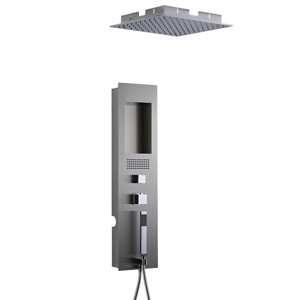 Douchepaneel Inbouw 3-Weg Thermostatisch 2-Delig met Plafond Douchekop, Handdouche en 1 x Zijdouche Geborsteld Staal | Llis