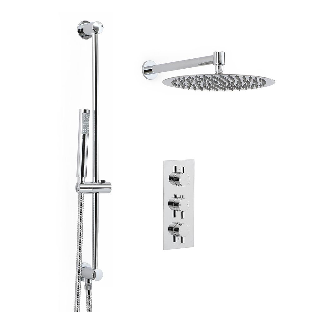 Deze Como doucheset is de perfect keuze om een aantrekkelijke hedendaagse stijl te creëren in uw badkamer. De doucheset bestaat uit een 2-weg thermostatische inbouw douchekraan, een 30cm ronde douchekop met muurbevestigde douchearm en een handdouche met glijstang.