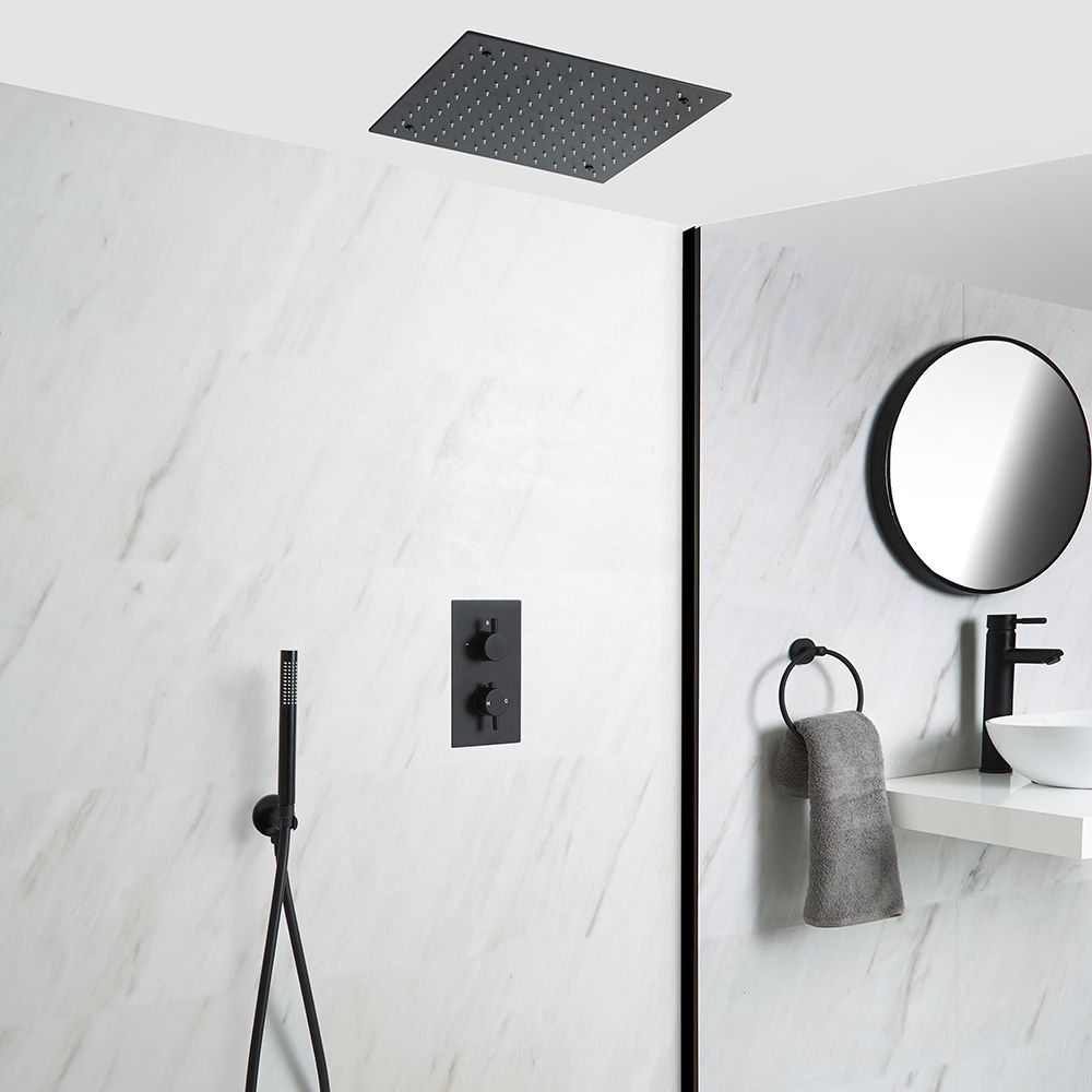 Doucheset - Douchekraan Thermostatisch Inbouw 2-Weg met Omstel met Verzonken 40x40cm Plafond Douchekop en Handdouche Mat Zwart | Nox