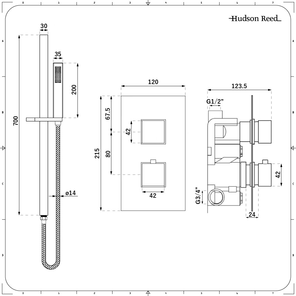 Update uw badkamer met deze stijlvolle Kubix doucheset bestaande uit een 2-greeps 1-weg thermostatische douchekraan en een handdouche met glijstang.