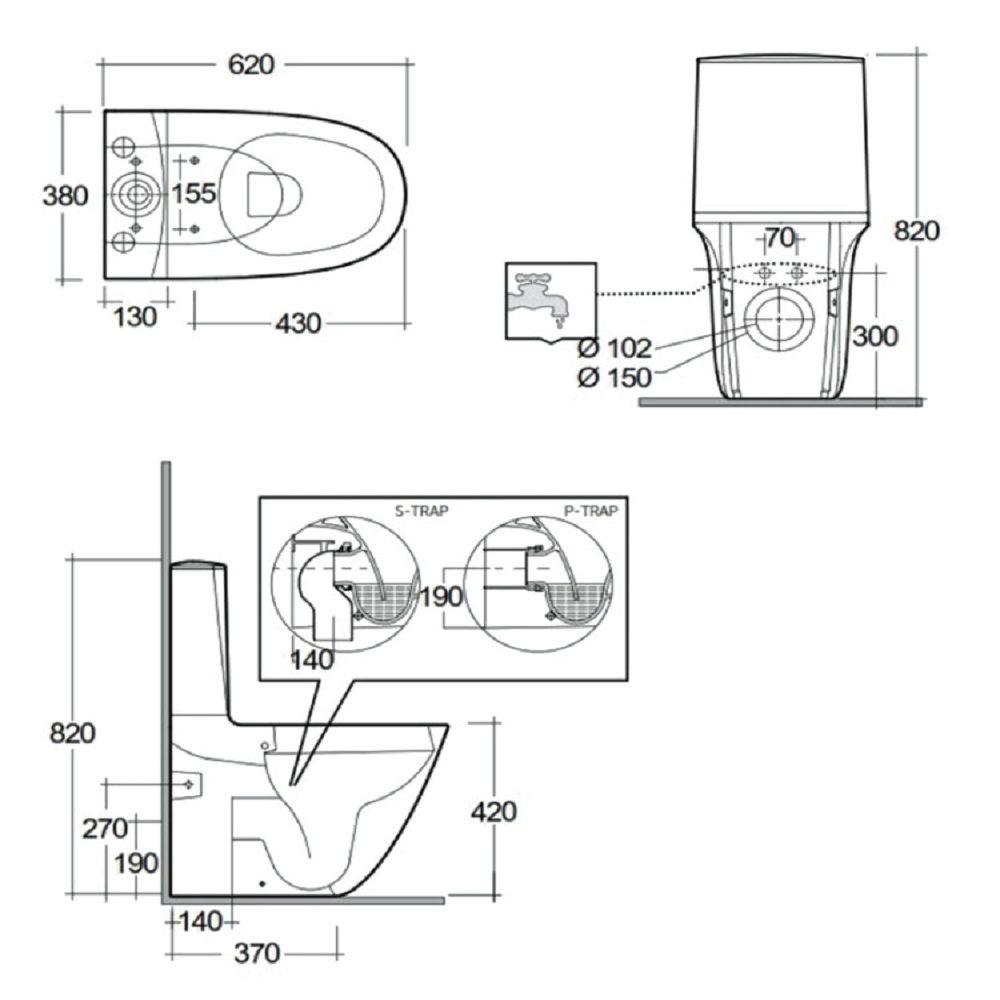 | Toilet Type | Duoblok Toiletten, Toilet Zonder Spoelrand |
