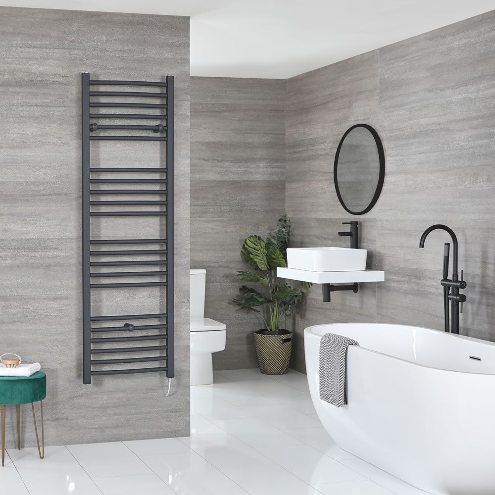 Geef uw badkamer een frisse hedendaagse stijlvolle look met deze Artle 50 x 160cm antraciete elektrische handdoekradiator, inclusief 800W verwarmingselement.
