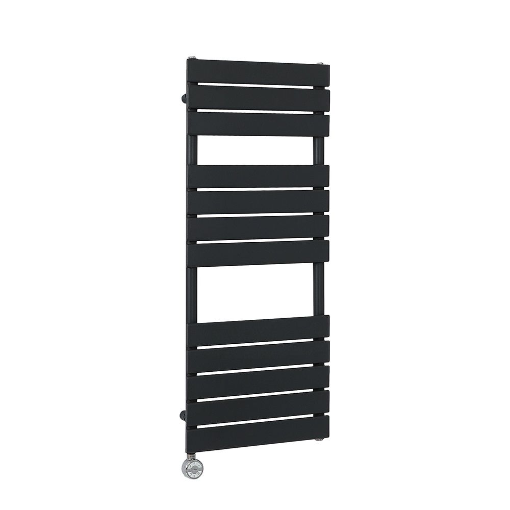 Elektrische Handdoekradiator met Vlakke Panelen Zwart | 45cm x 4,5cm x 120cm (B x D x H) | Lustro