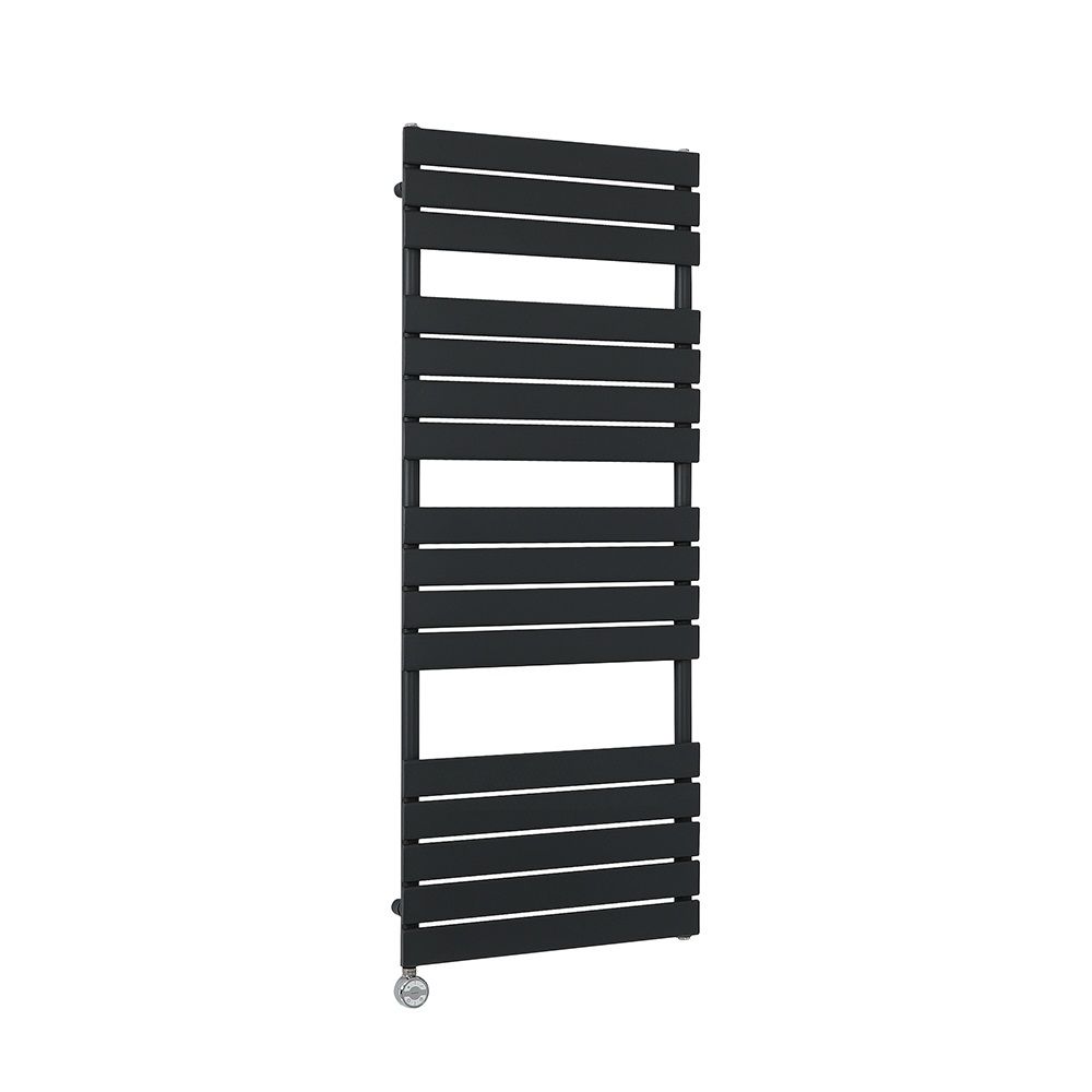 Geef uw badkamer een gedurfde, hedendaagse look met deze Lustro 60cm x 150cm zwarte, elektrische handdoekradiator inclusief 1000W thermostatisch verwarmingselement.