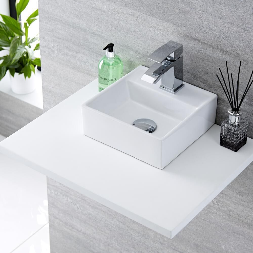 Fontein Toilet Keramiek Vierkant B.28 x D.28cm Met 1 x Kraangat Wit | Halwell