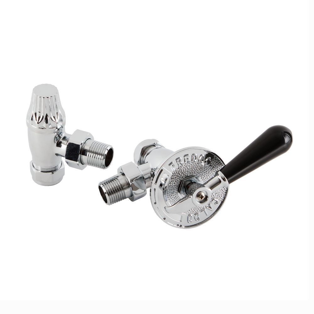 Deze haakse radiatorkranen hebben een elegant, klassiek ontwerp en zijn geschikt voor gebruik met alle radiatoren en handdoekradiatoren bij Hudson Reed.