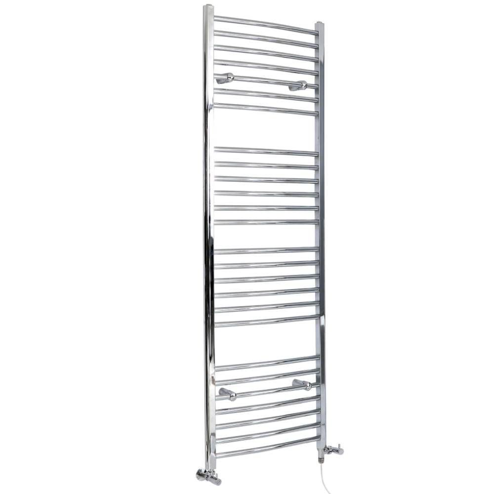 Handdoekradiator Dual Fuel / Hybride Chromen Gebogen Ontwerp - Incl. Verwarmingselement, T-Stuk en Radiatorkranen | Keuze Afmeting | Kent