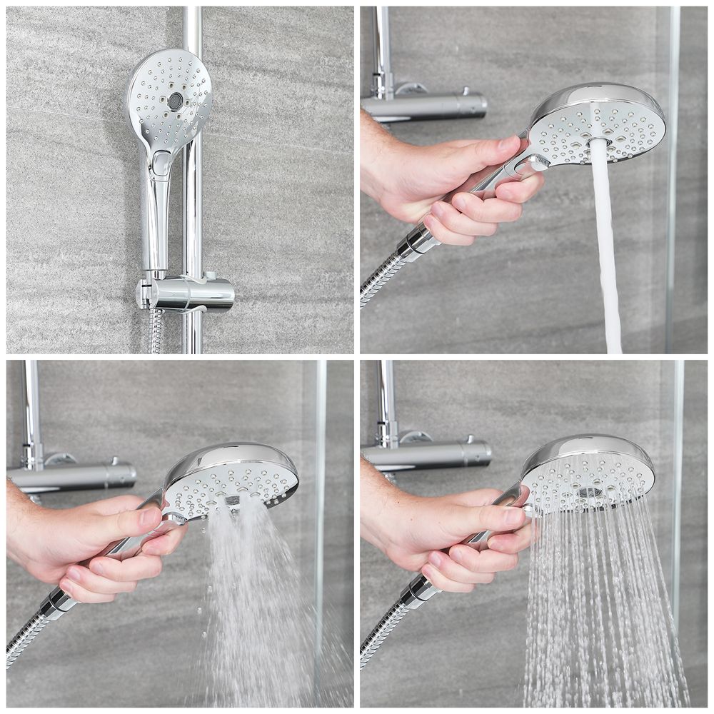Ideaal als vervanging voor en oude handdouche, beschikt deze handdouche over diverse waterstraalstanden zodat u uw perfecte douche-ervaring kunt creëren. De handdouche is snel en gemakkelijk te installeren en heeft een schitterende chromen afwerking. De anti-kalk siliconen nopjes kunnen gemakkelijk schoongemaakt worden en kalkaanslag kunt u eenvoudig wegvegen.
