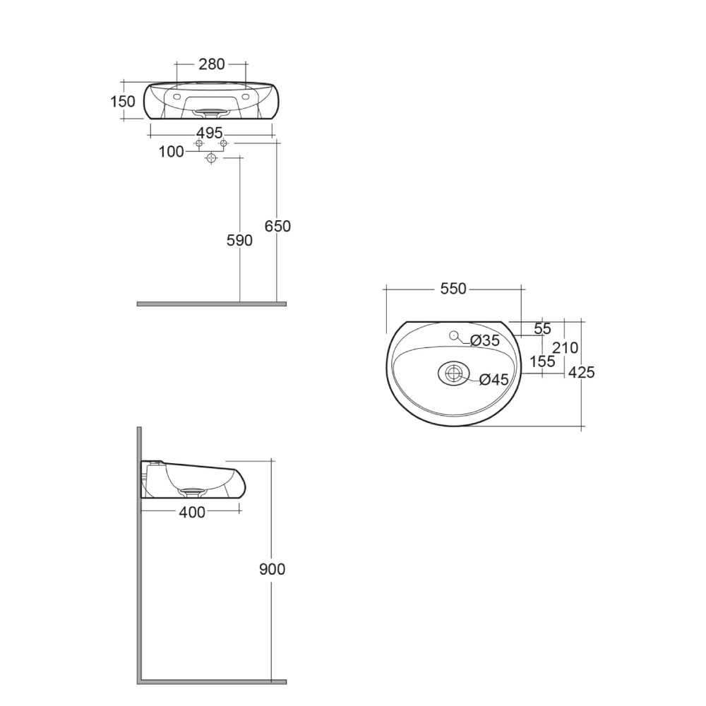Hangende Wastafel Ovaal Modern 55cm x 42,5cm Mat Wit (1 Kraangat) | RAK Cloud x Hudson Reed