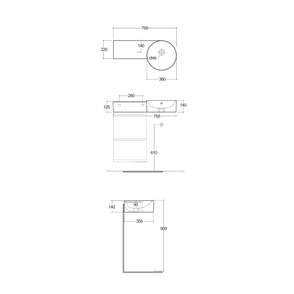 - Handige rand aan de linkerkant - creëert een opbergruimte voor uw badkamerbenodigdheden