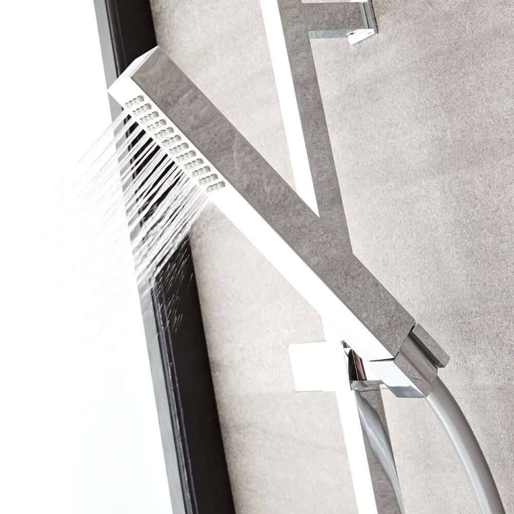De douchekraan heeft een verchroomde afwerking en een gemakkelijk te gebruiken handgreep die de waterstroom en -temperatuur regelt. Het bevat ook een omstelling knop zodat u kunt schakelen tussen de vaste douchekop en de handdouche.