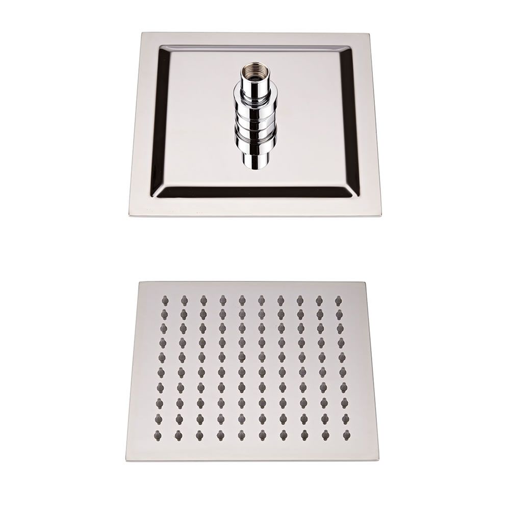 De 20cm vierkante douchekop levert een heerlijk regeneffect voor een verfrissende douche-ervaring. Hij heeft ook siliconen nopjes die zorgen voor de eenvoudige verwijdering van eventuele kalkaanslag zodat de douchekop altijd op volle stroom werkt.
