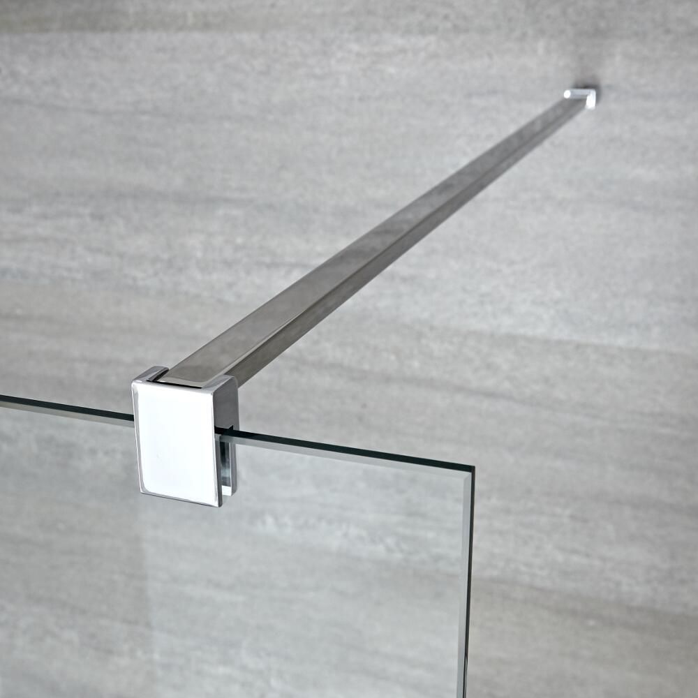 De douchewand is 195cm hoog en heeft een luxe chromen profiel voor een moderne strakke uitstraling. De douchewand is gemaakt van 8 mm gehard veiligheidsglas voor de gemoedsrust. Maak de inloopdouche compleet door deze combineren met een van onze douchesystemen.