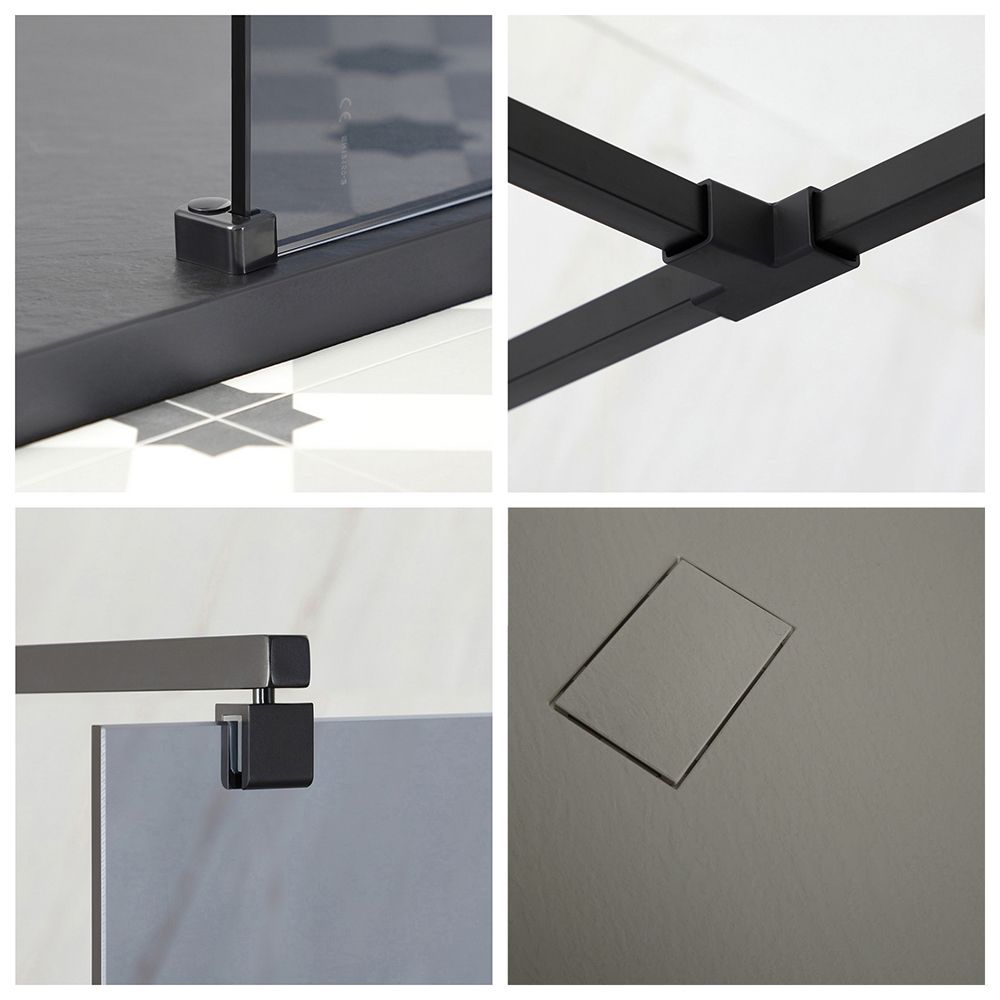 Deze inloopdouche is ontworpen voor installatie in een hoek in de badkamer en de douchebak is verkrijgbaar in diverse afmetingen vanaf 110cm x 70cm tot 180cm x 90cm, en in deze afwerkingen: antraciet, grijs en wit. U kunt dan de perfecte afmeting en afwerking kiezen voor uw badkamer. U heeft ook de optie om een 30cm scharnierende zijwand toe te voegen. Maak gewoon uw keuzes uit de bovenstaande opties en wij doen de rest!