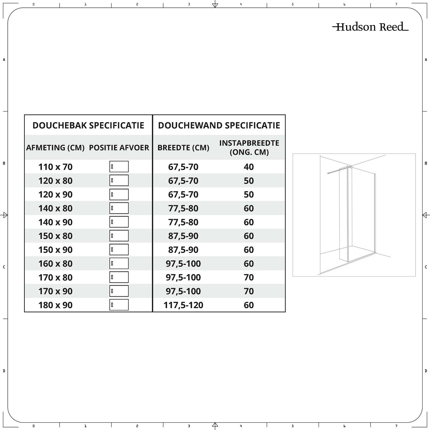 - Douchewand is 195cm hoog om het douchewater op te vangen
