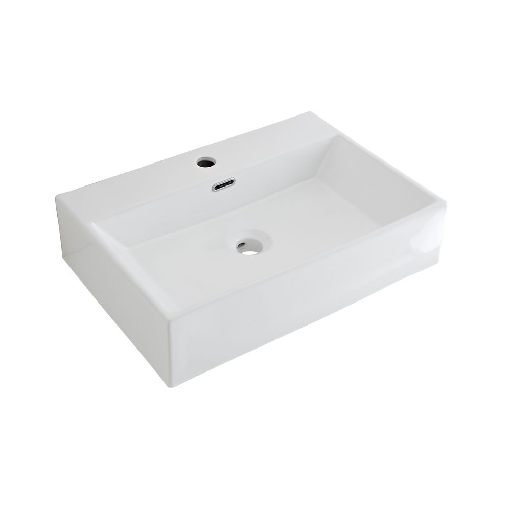 Opzetwastafel Rechthoekig 60,5cm x 43cm (1 Kraangat) Wit | Sandford