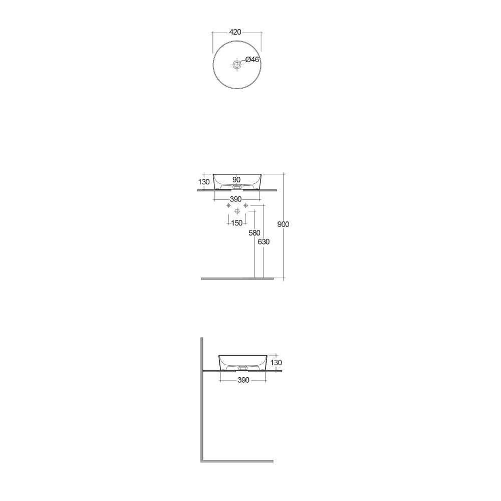 - Geen kraangaten - geschikt voor gebruik met een muurgemonteerde of hoge wastafelkraan