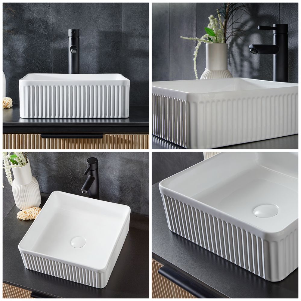 Breng een nieuwe, verfijnde look in uw badkamer met de stijlvolle Florence 38cm vierkante, geribbelde opzetwastafel.