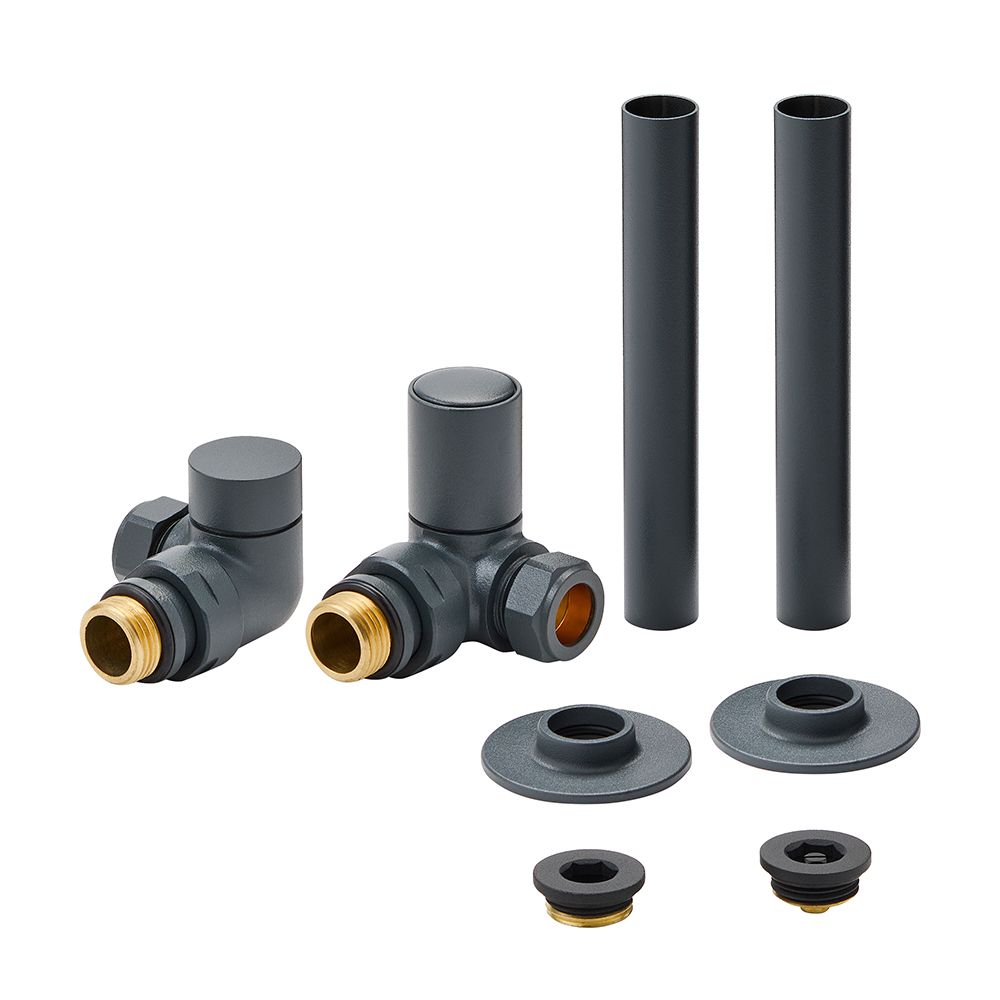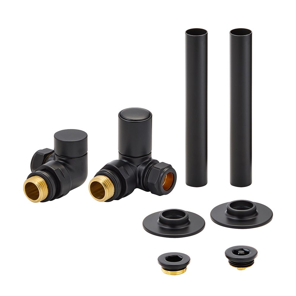Deze set radiatorkranen en -buizen is verkrijgbaar in verschillende afwerkingen - maak uw keuze uit de bovenstaande opties.