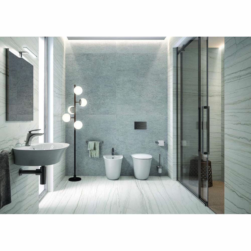 Breng een vleugje elegantie in uw badkamer met het RAK Sensation randloze, staande toilet, inclusief softclose toiletzitting.