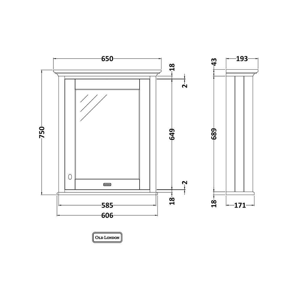 Spiegelkast 65cm x 75cm - Storm Grey (Grijs) | Old London