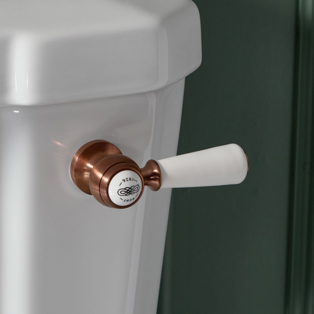 Hij heeft een ergonomische vorm voor maximaal gebruiksgemak. Ontworpen voor gebruik met een traditionele stortbak en toilet met sifonmechanisme, heeft deze spoelhendel een stevige constructie van messing en keramiek. Hij heeft een tijdloos ontwerp en is voorzien van authentieke, chique details.