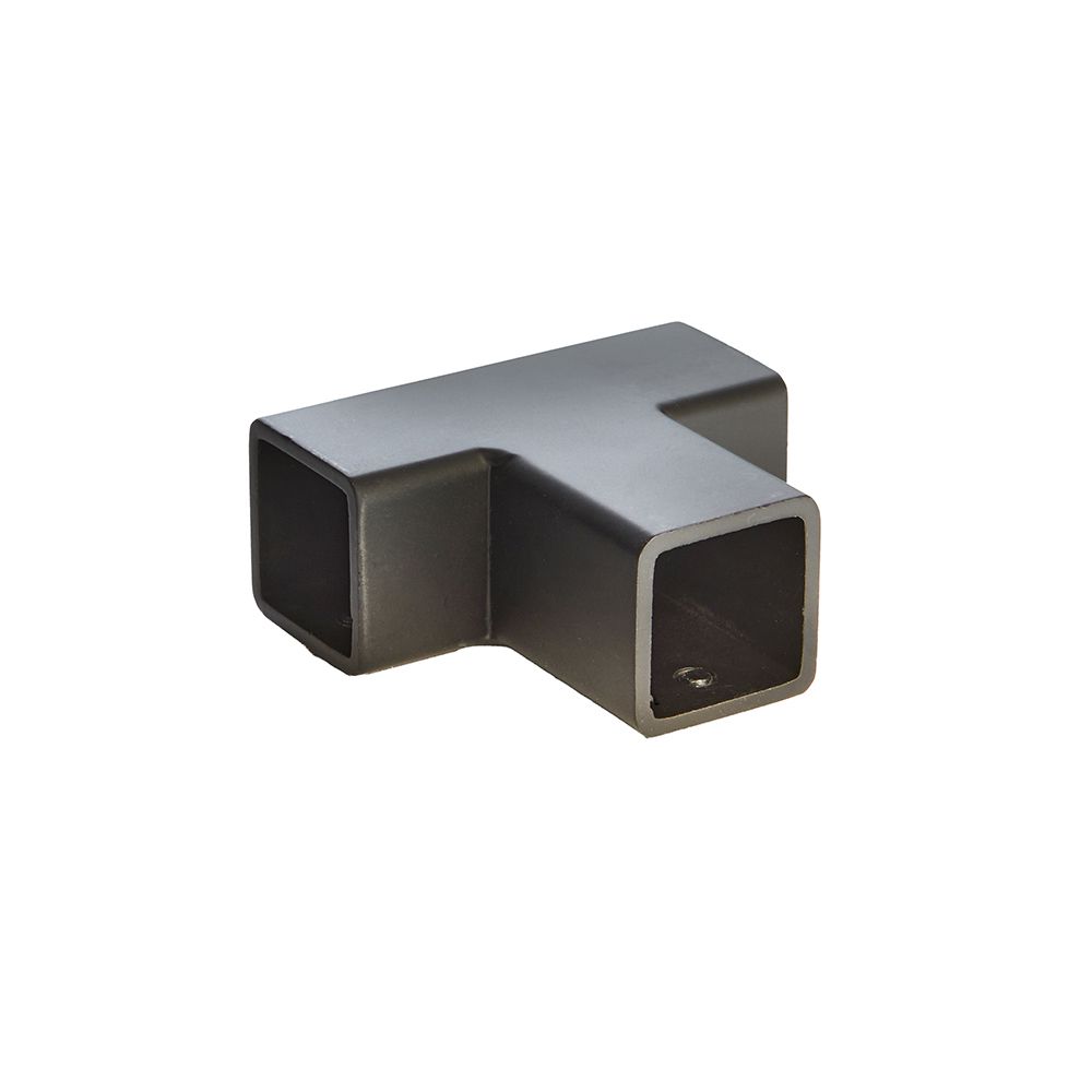 Het T-stuk is gemaakt van aluminium en heeft een modern, vierkant ontwerp. Hiermee kunt u twee stabilisatiestangen verbinden om twee douchewanden haaks op elkaar te bevestigen en zo een inloopdouche te creëren.
