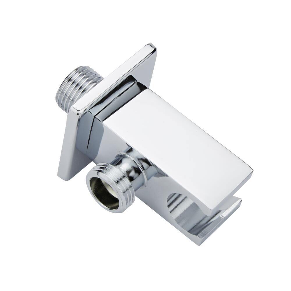 Vierkante Verchroomd Massief Messing Muuraansluitbocht incl Handdouchehouder | Kubix