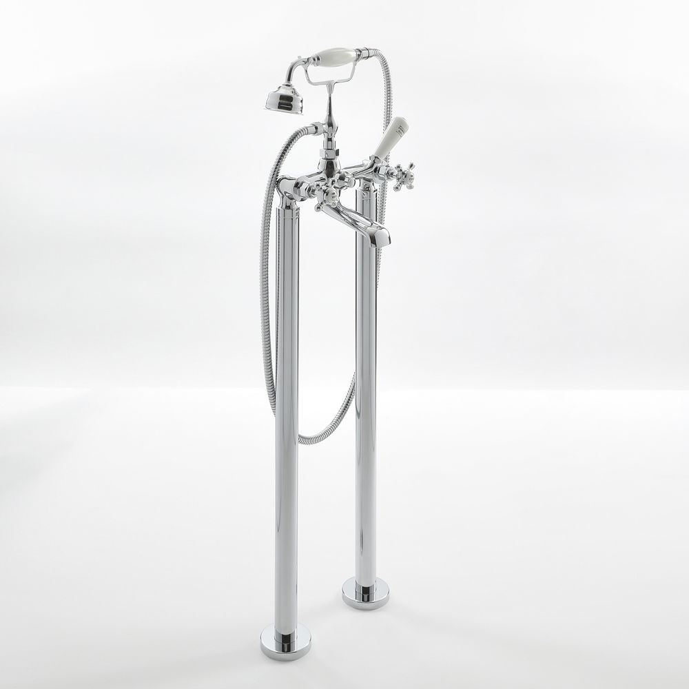 Deze vrijstaande Elizabeth badmengkraan met chromen standpijpen wordt geleverd met een handdouche en doucheslang en is perfect voor gebruik met onze traditionele vrijstaande baden. De kraan staat op luxe standpijpen om een echte traditionele stijl te creëren. Deze badmengkraan heeft traditionele kruiskop handvaten en is gemaakt van hoogwaardig massief messing, zodat u verzekerd bent van kwaliteit en duurzaamheid.