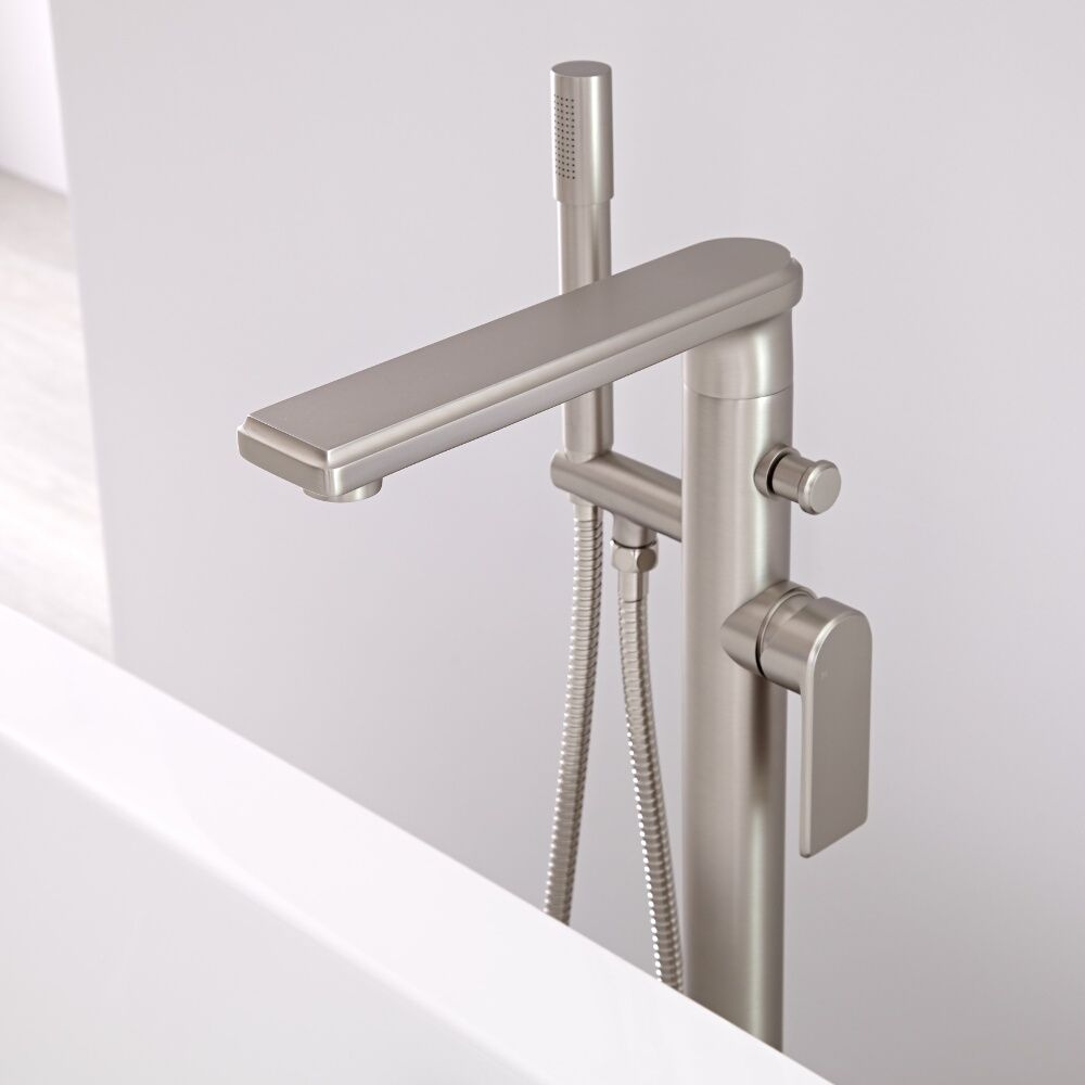 Vrijstaande Badmengkraan met Handdouche Geborsteld Nikkel | Aldwick